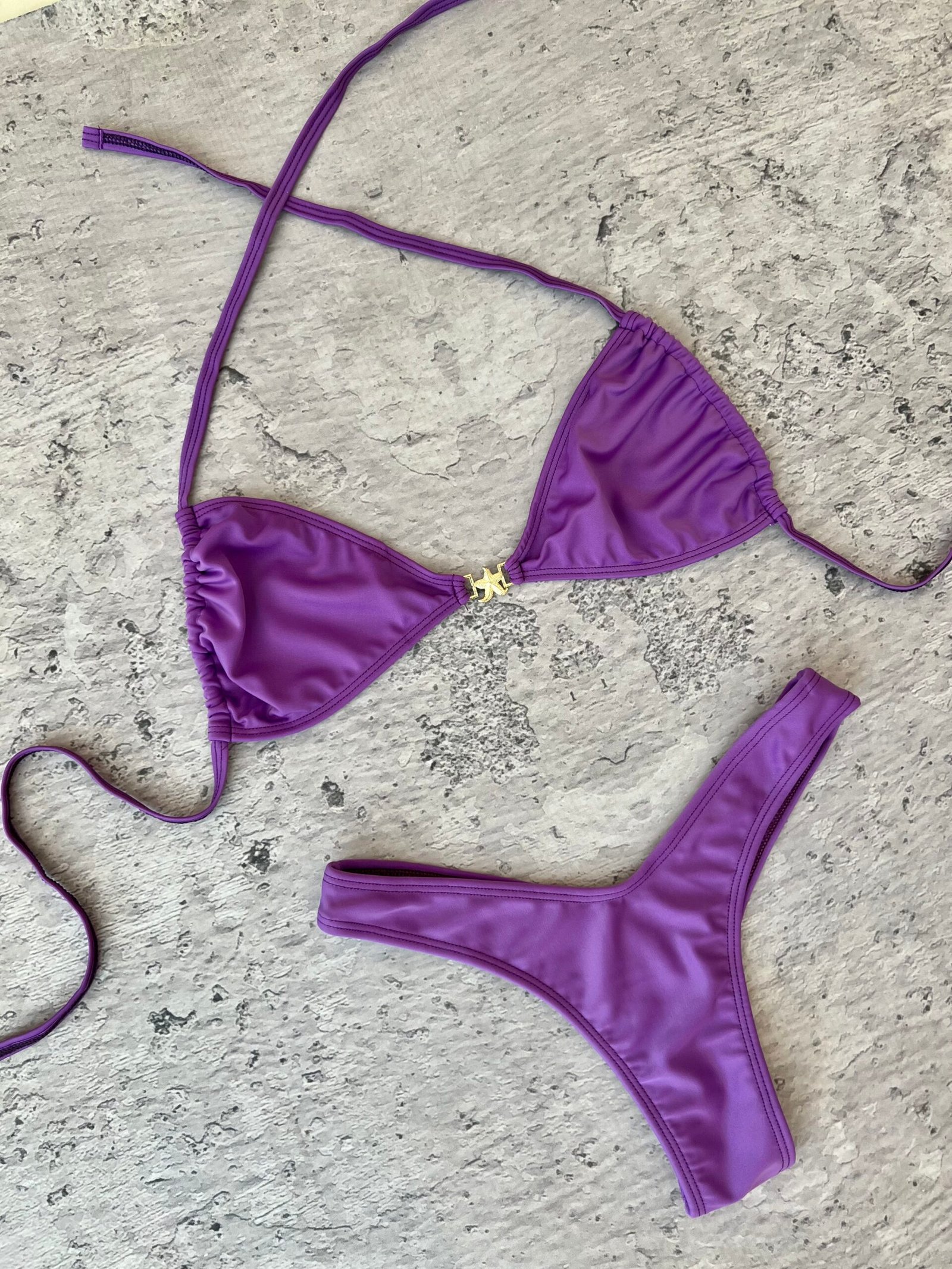 BIKINI LYCRA, TRIANGULO DETALLES AL MEDIO CARACOL O ESTRELLA,  COLALESS REGULABLE
