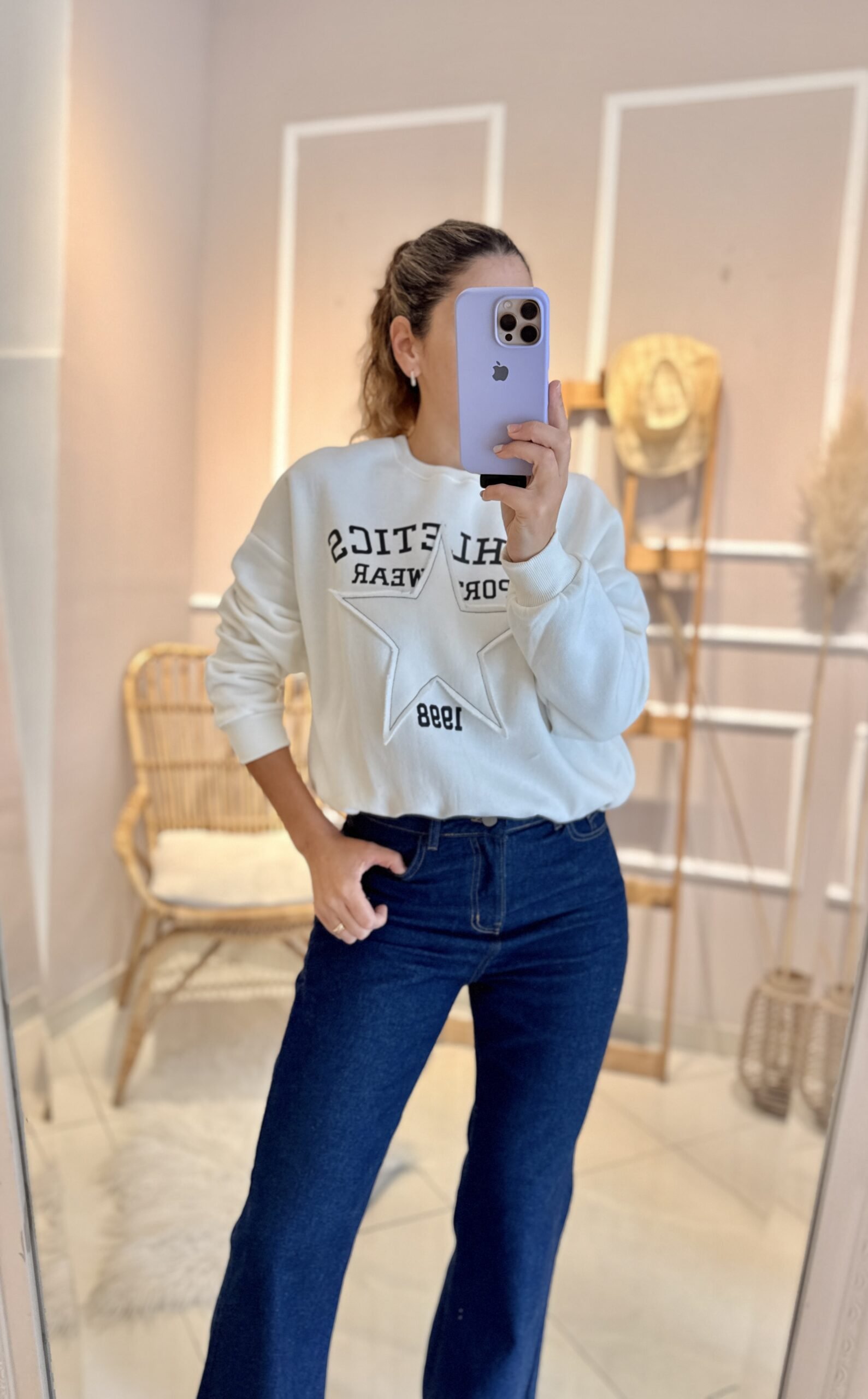 BUZO DE ALGODON CON FRIZA, TALLE UNICO ES OVER (M/L)