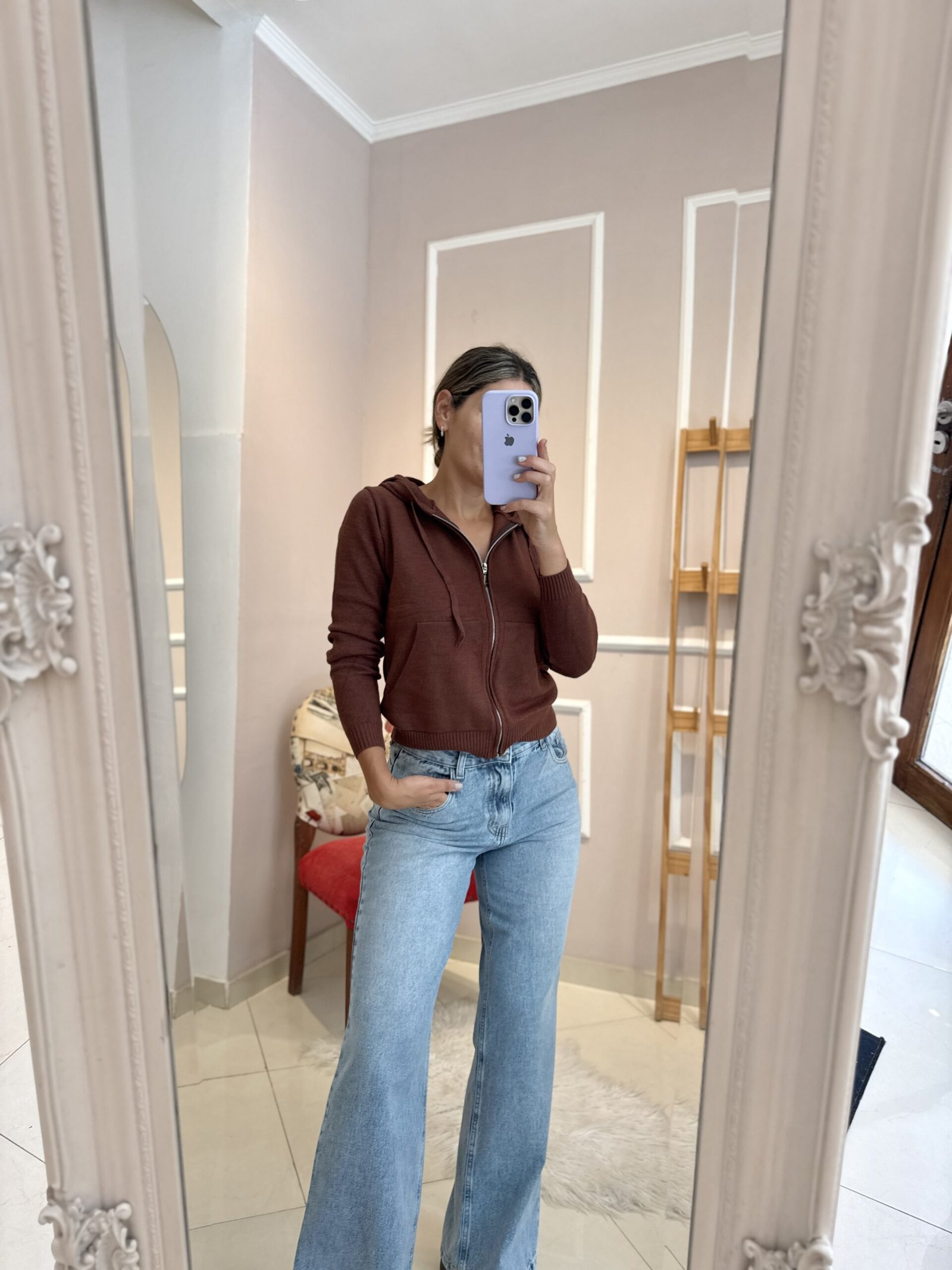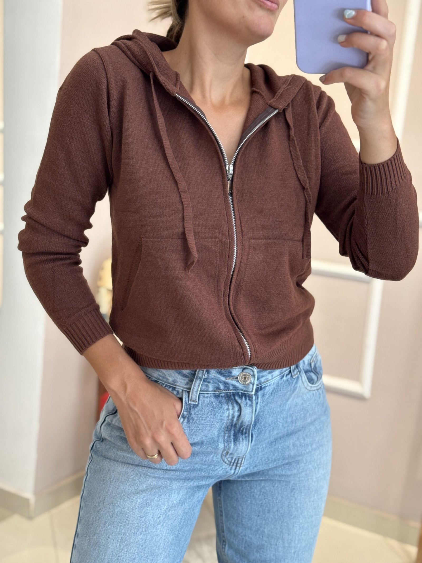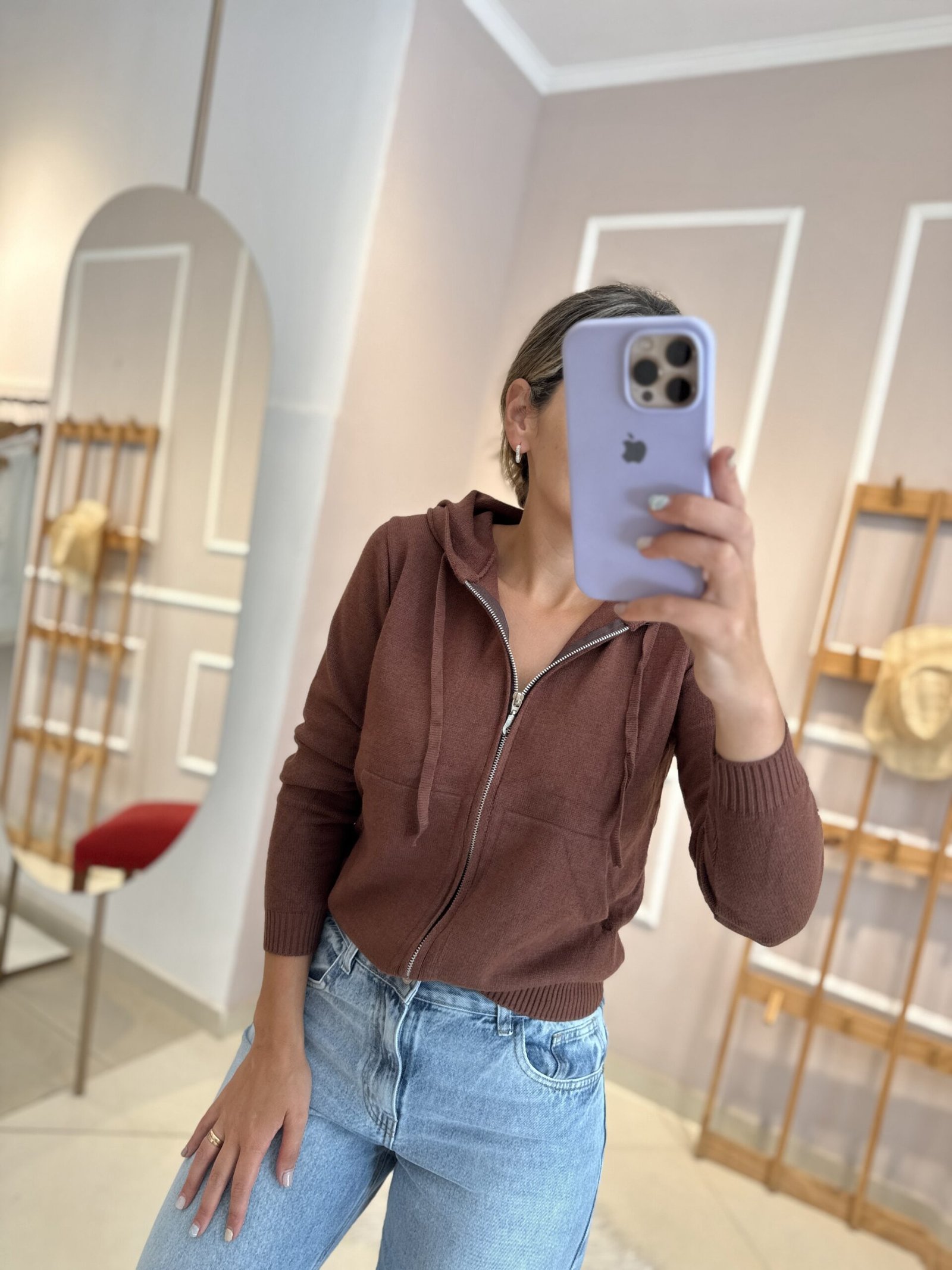 CAMPERA DE HILO CON CAPUCHA, TALLE UNICO, ES COMO UN M/L