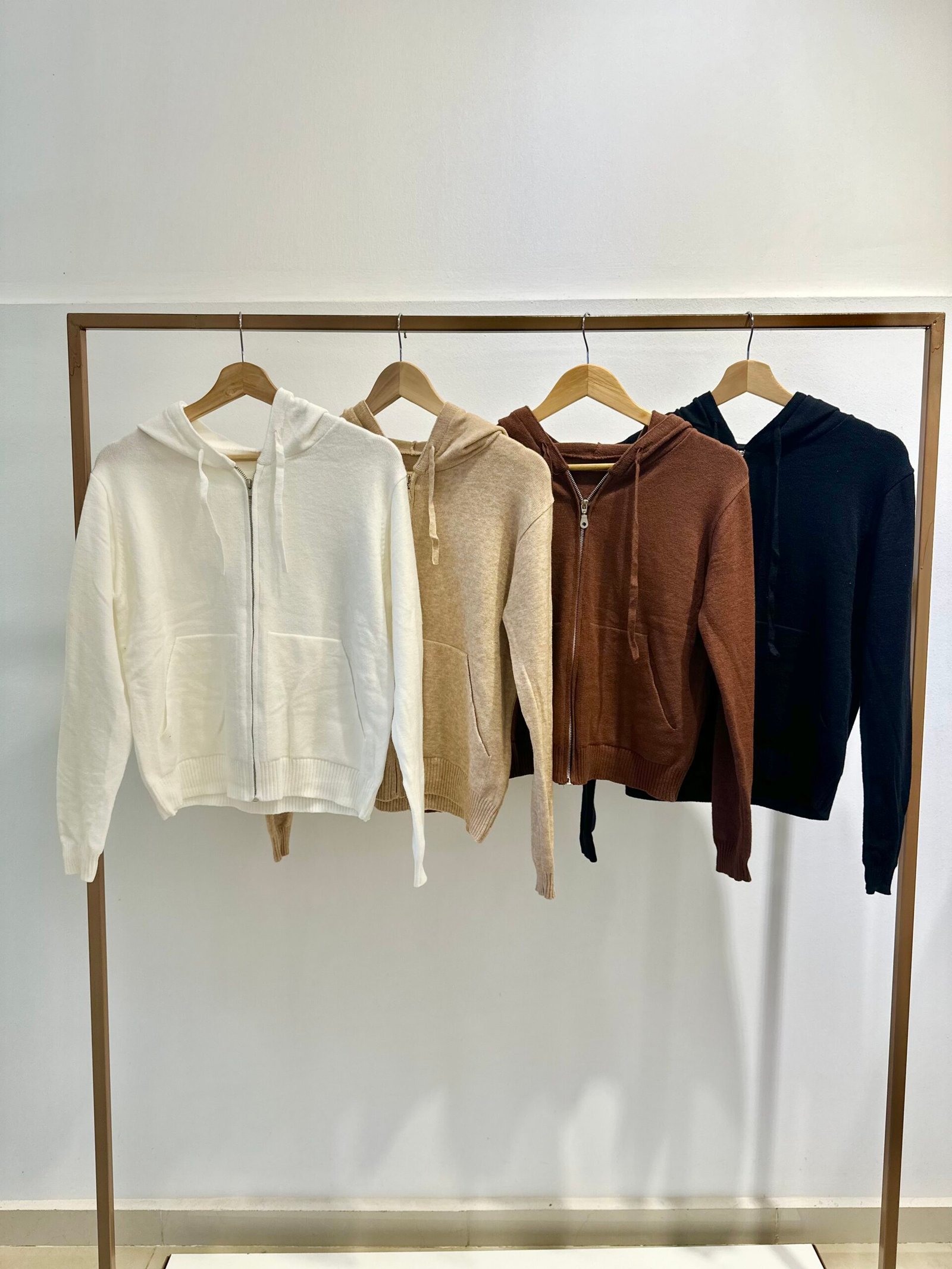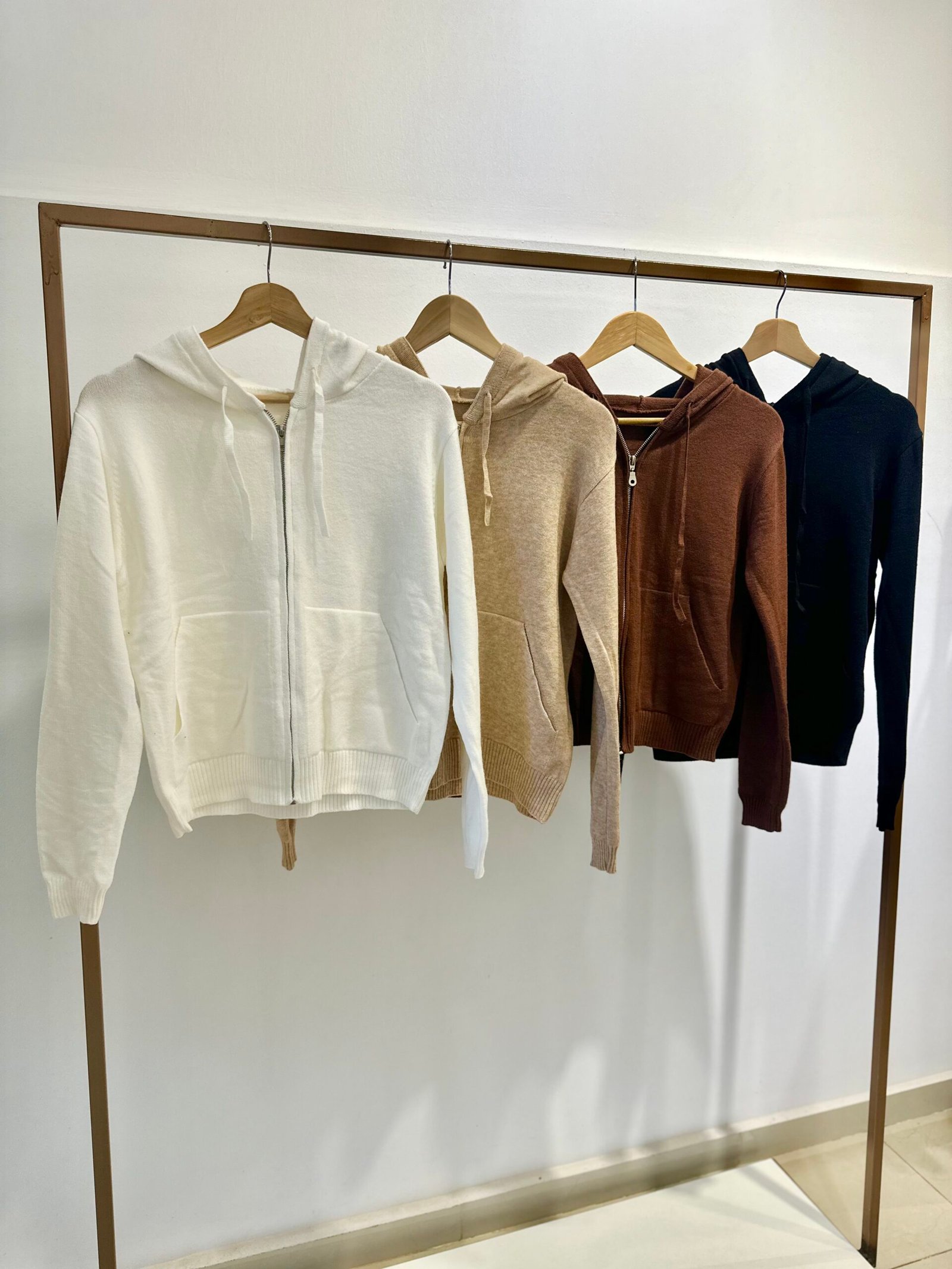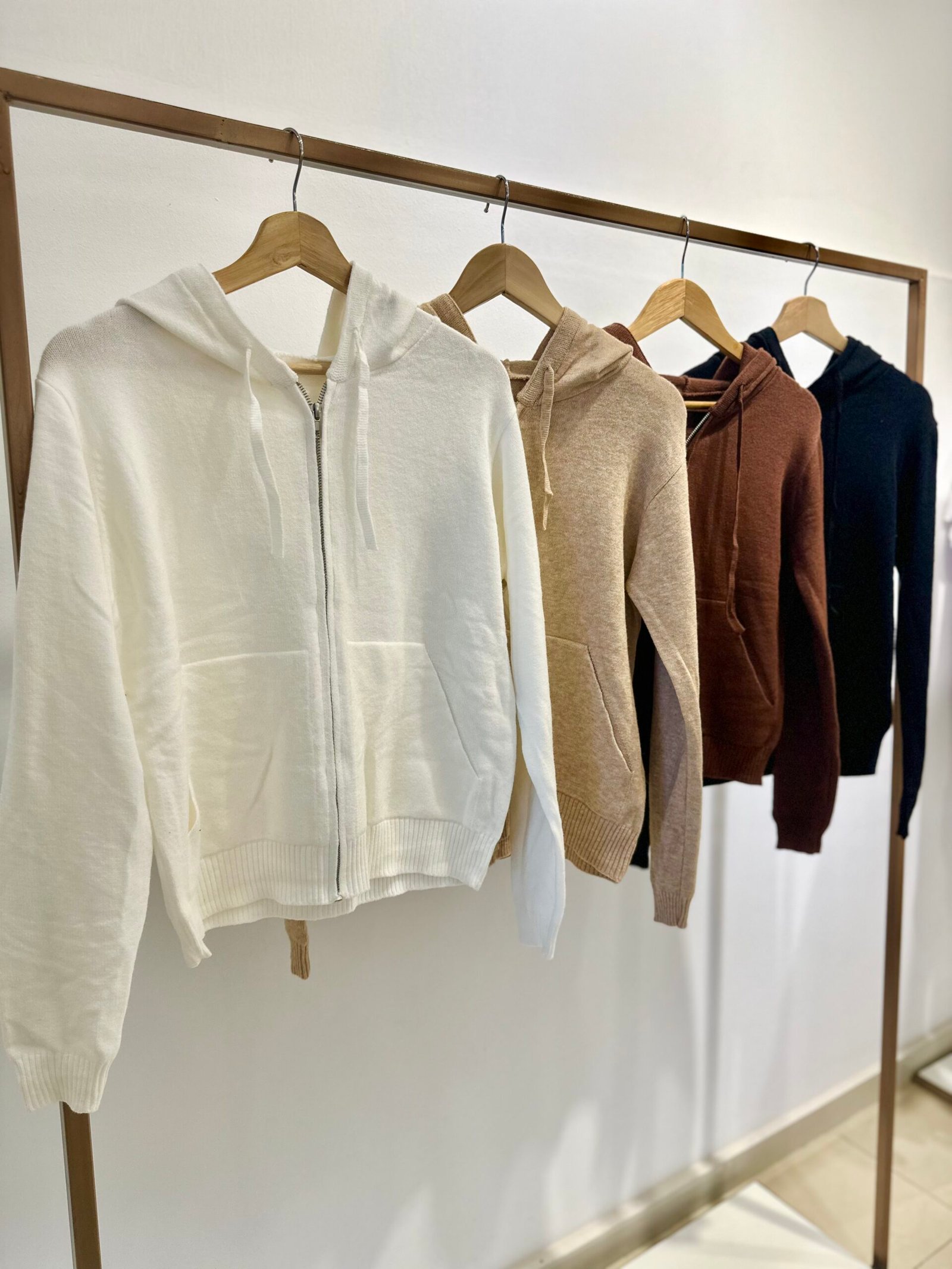 CAMPERA DE HILO CON CAPUCHA, TALLE UNICO, ES COMO UN M/L