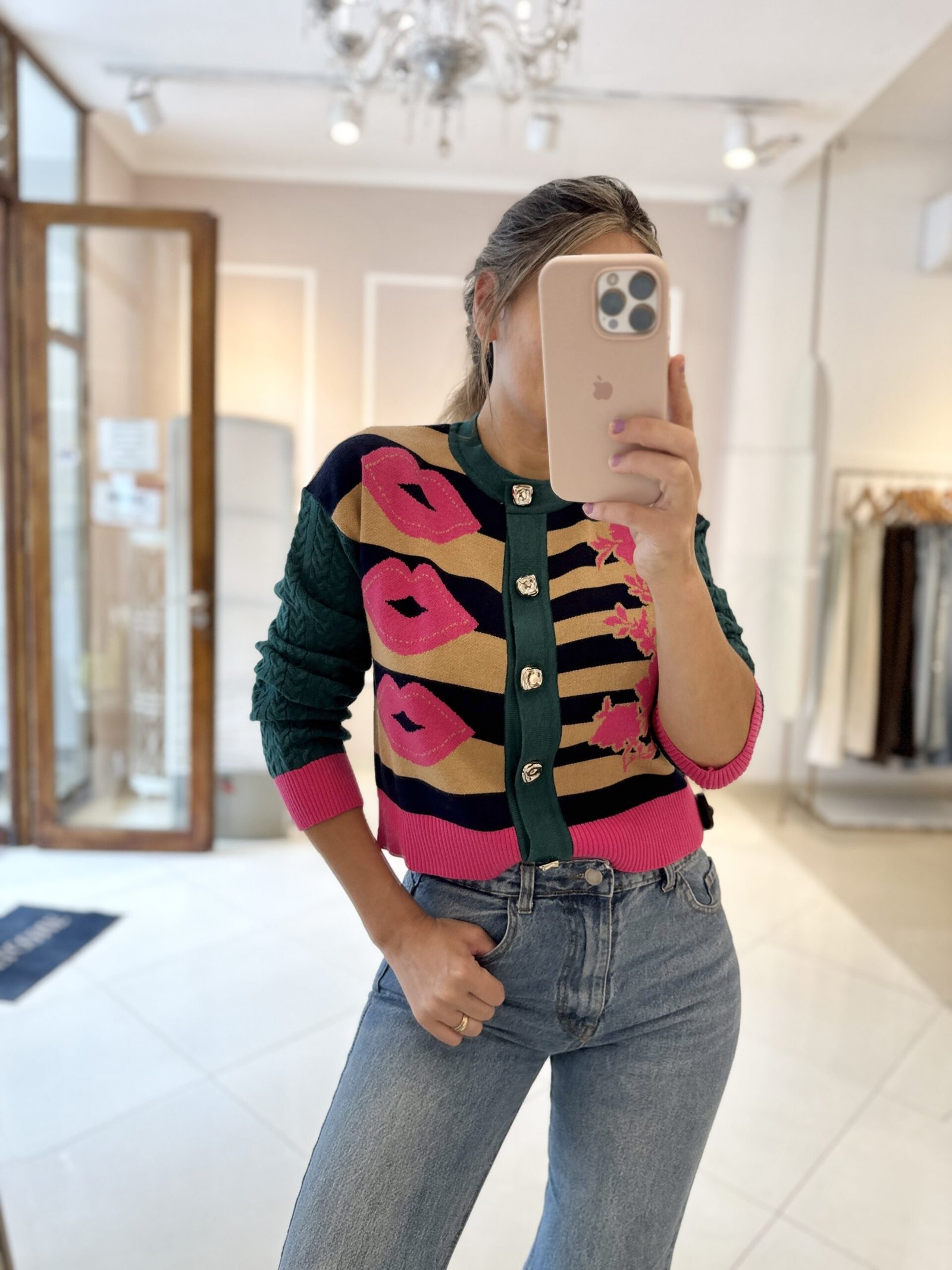 CARDIGAN ESTAMPADO CORTO, ES TALLE UNICO, ES COMO UN S/M