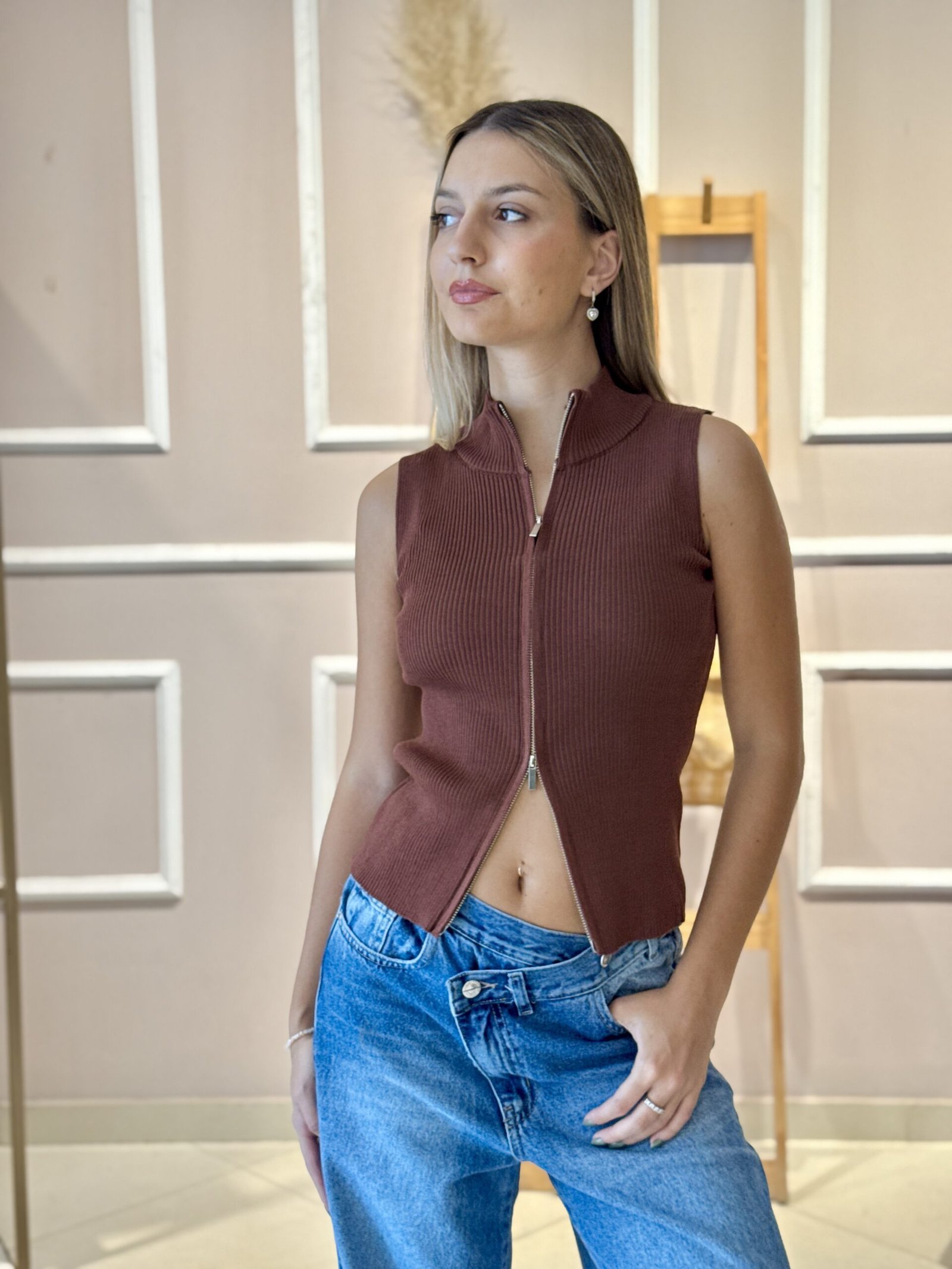 CHALECO HILO DE MORLEY, DOBLE CIERRE, TALLE UNICO