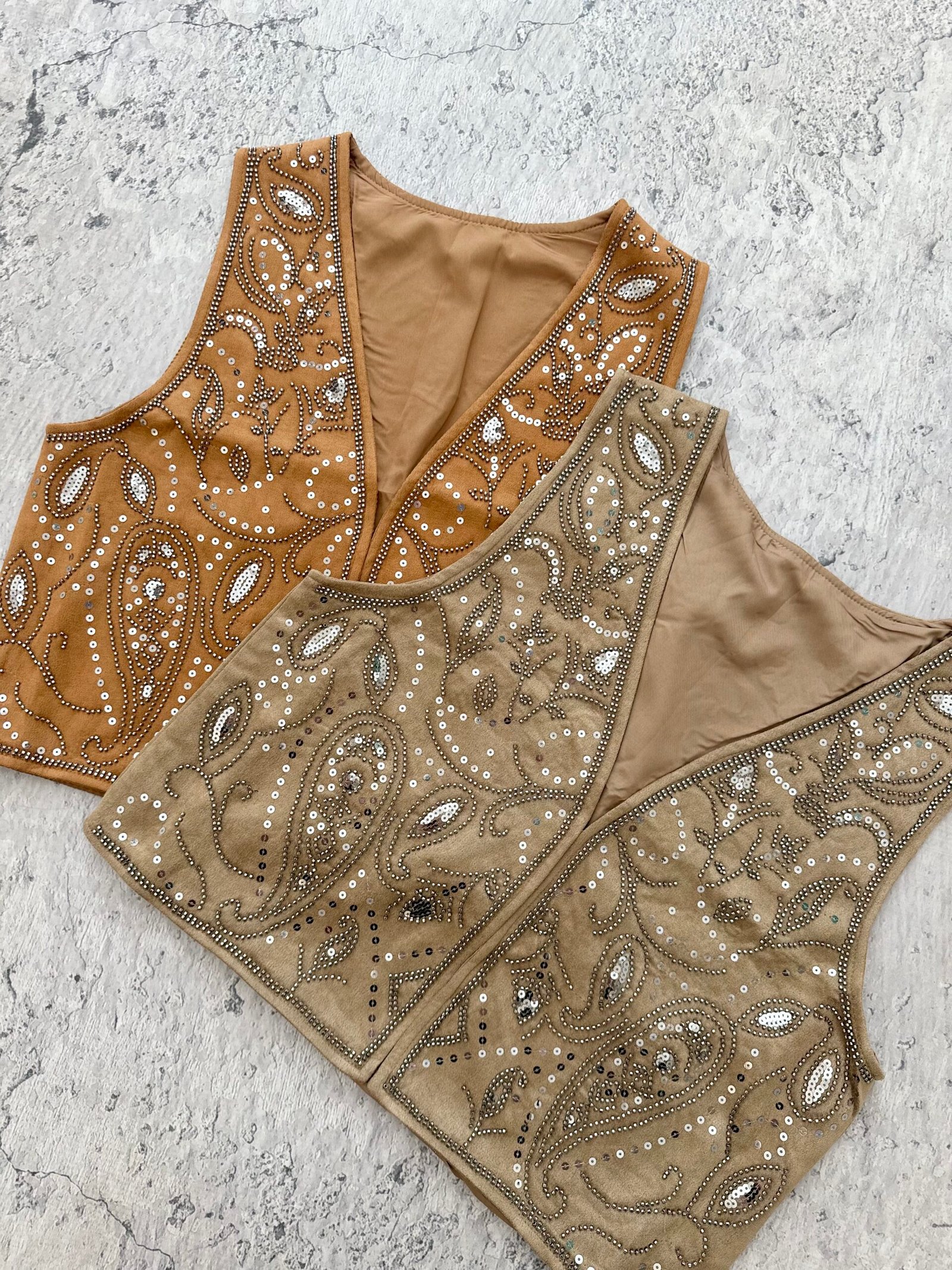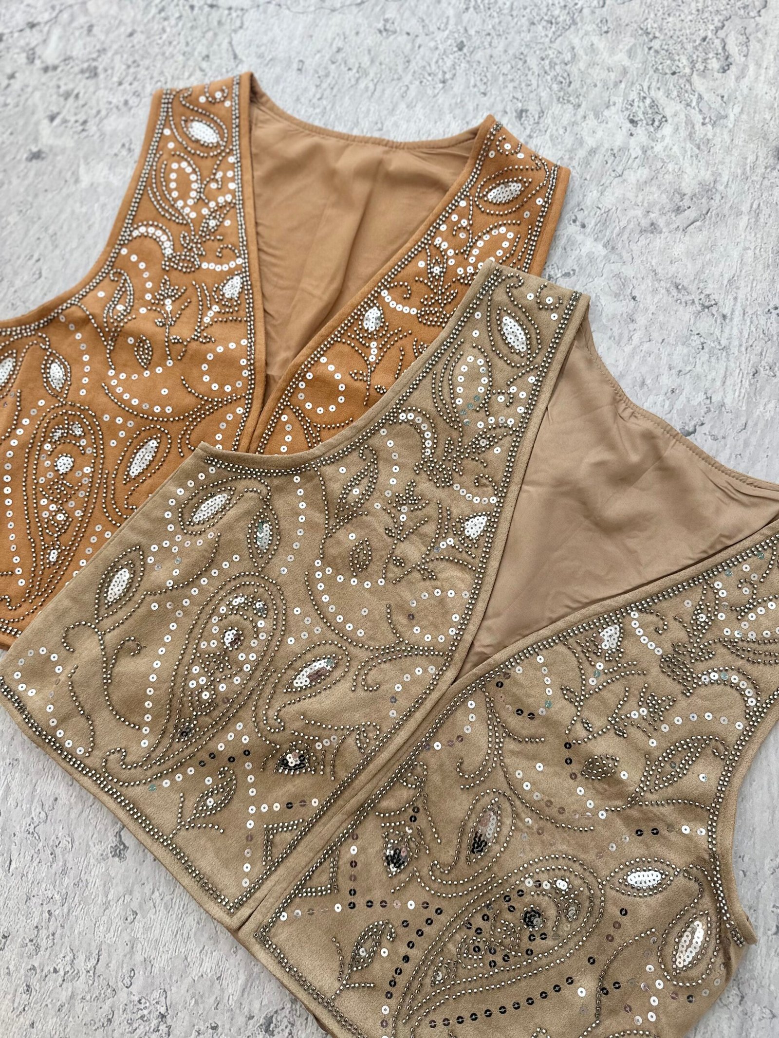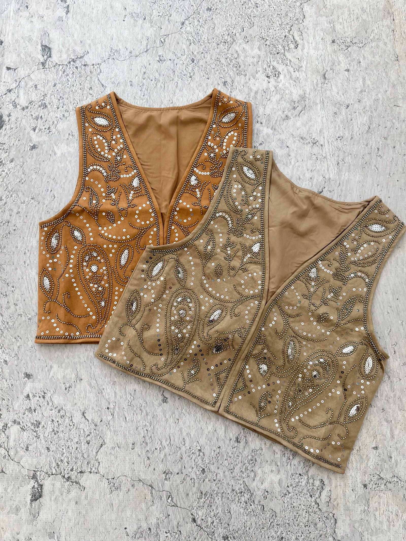 CHALECO IMPORTADO GAMUSADO CON BRILLO, VIENE POR TALLE