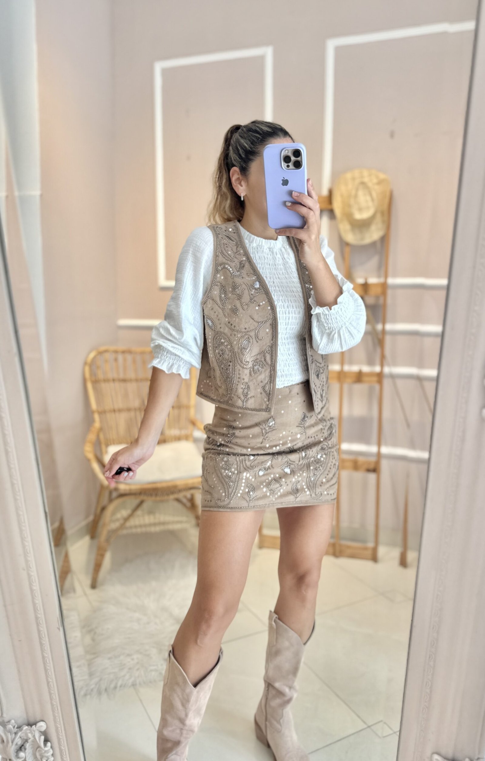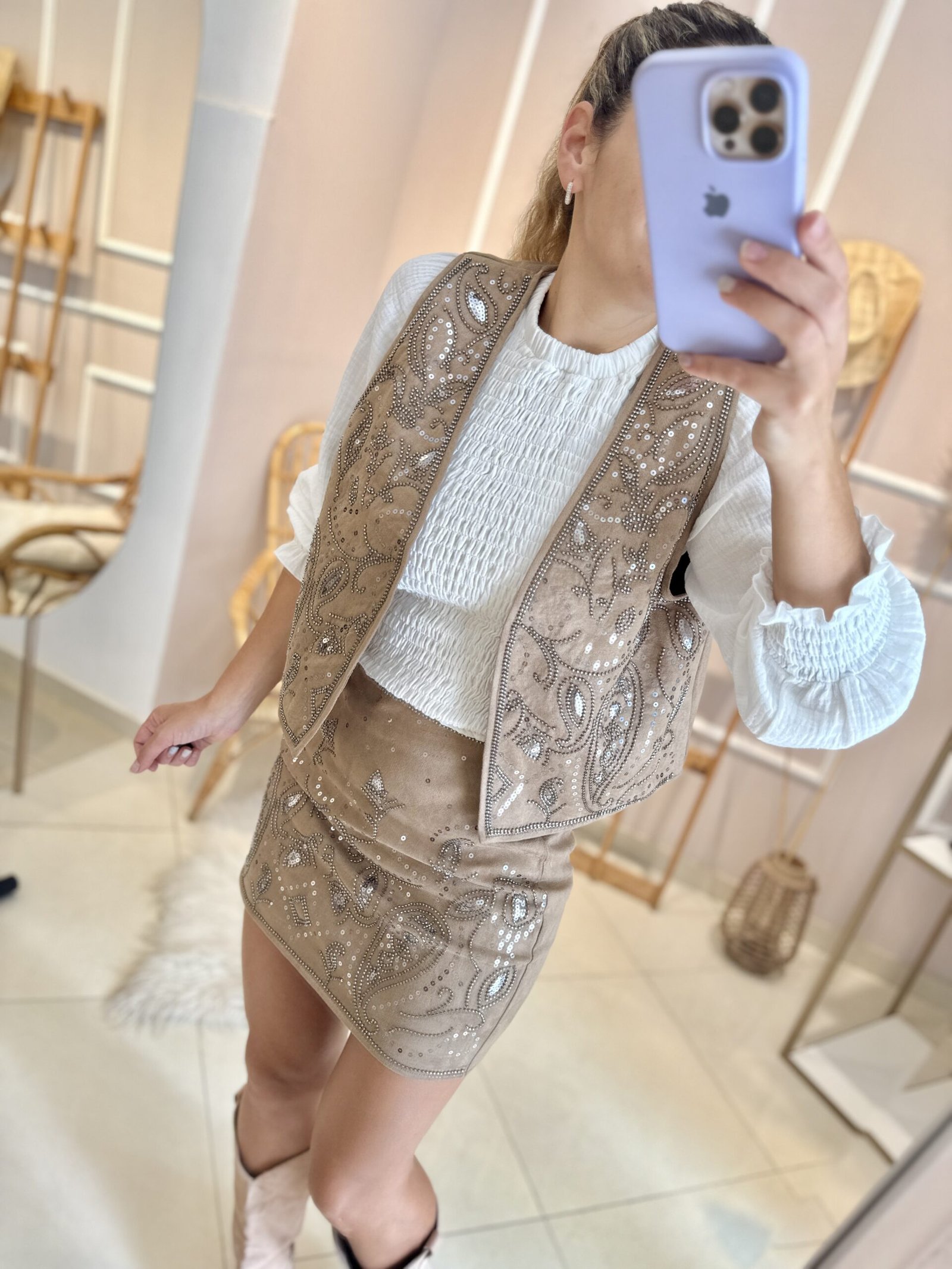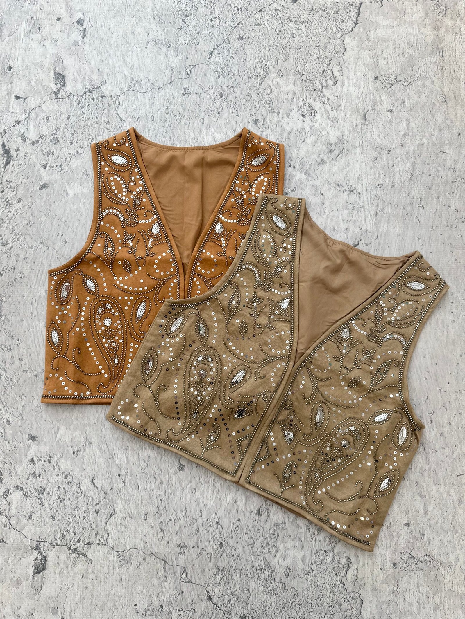 CHALECO IMPORTADO GAMUSADO CON BRILLO, VIENE POR TALLE