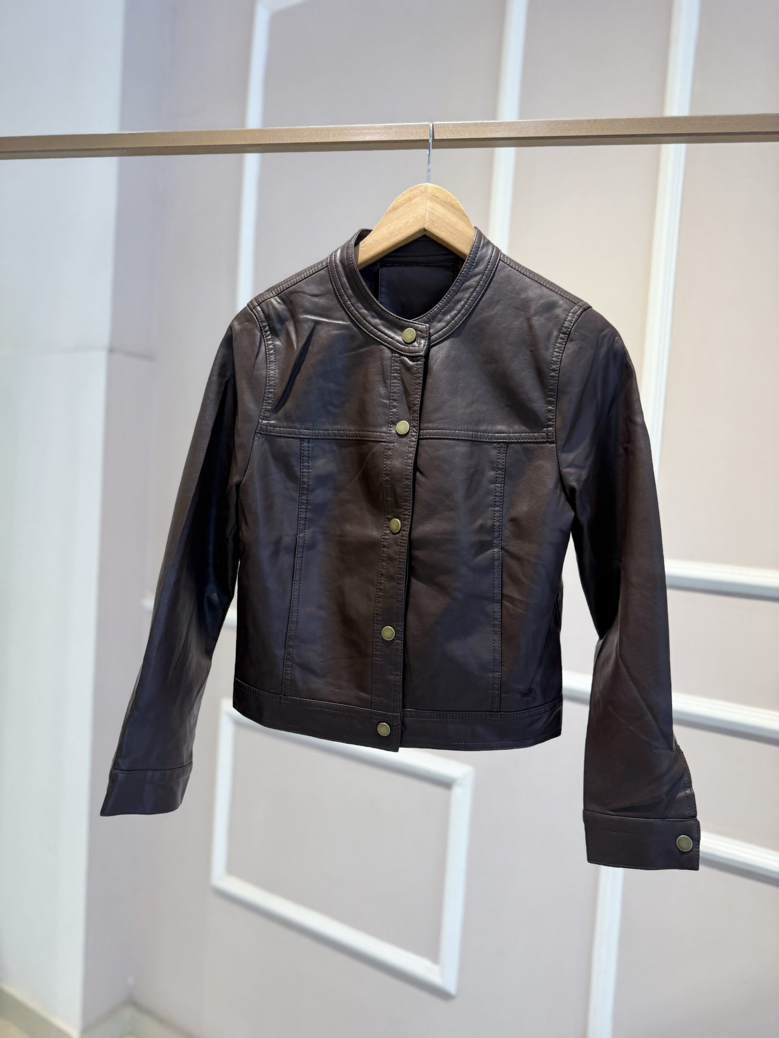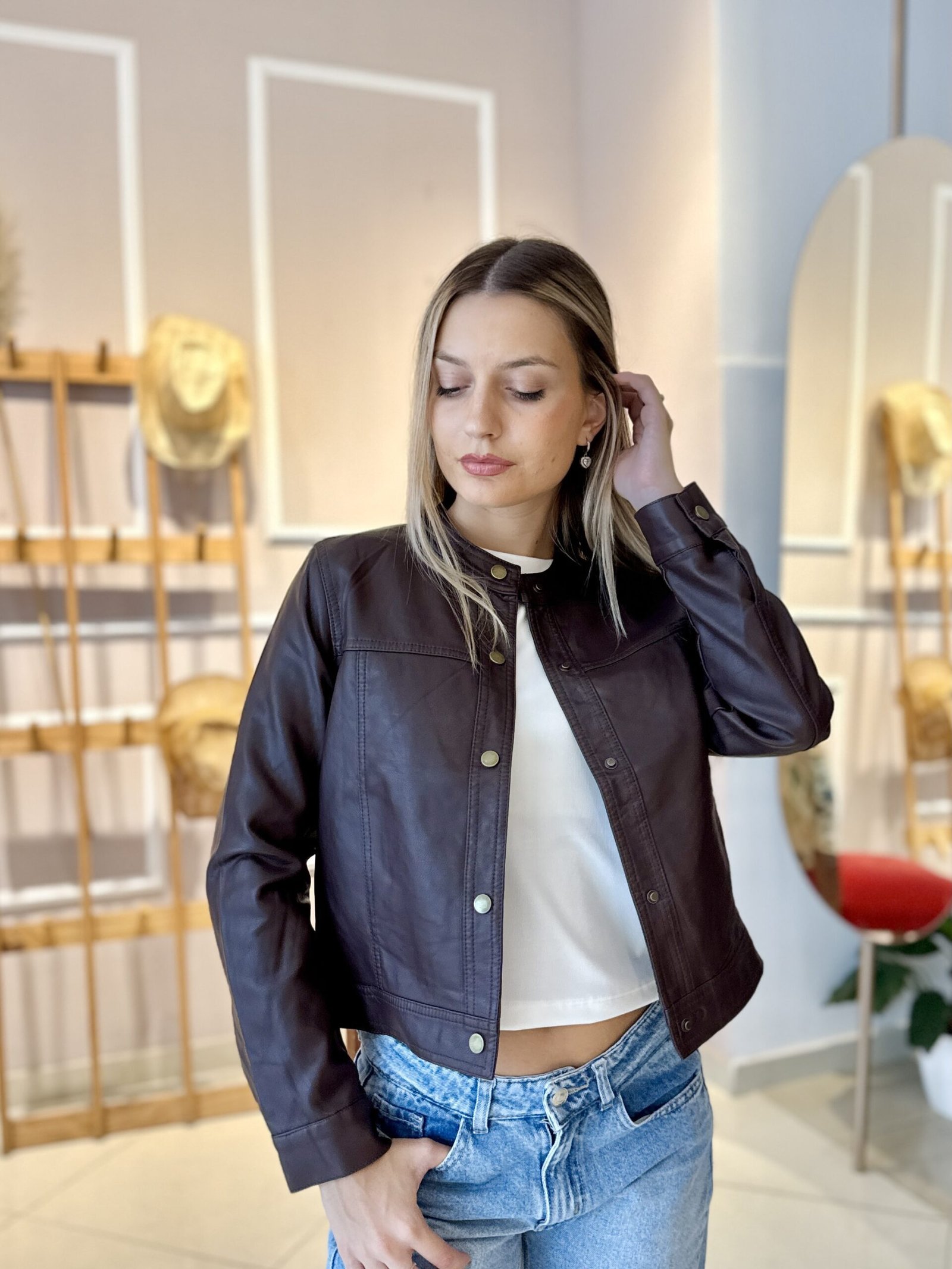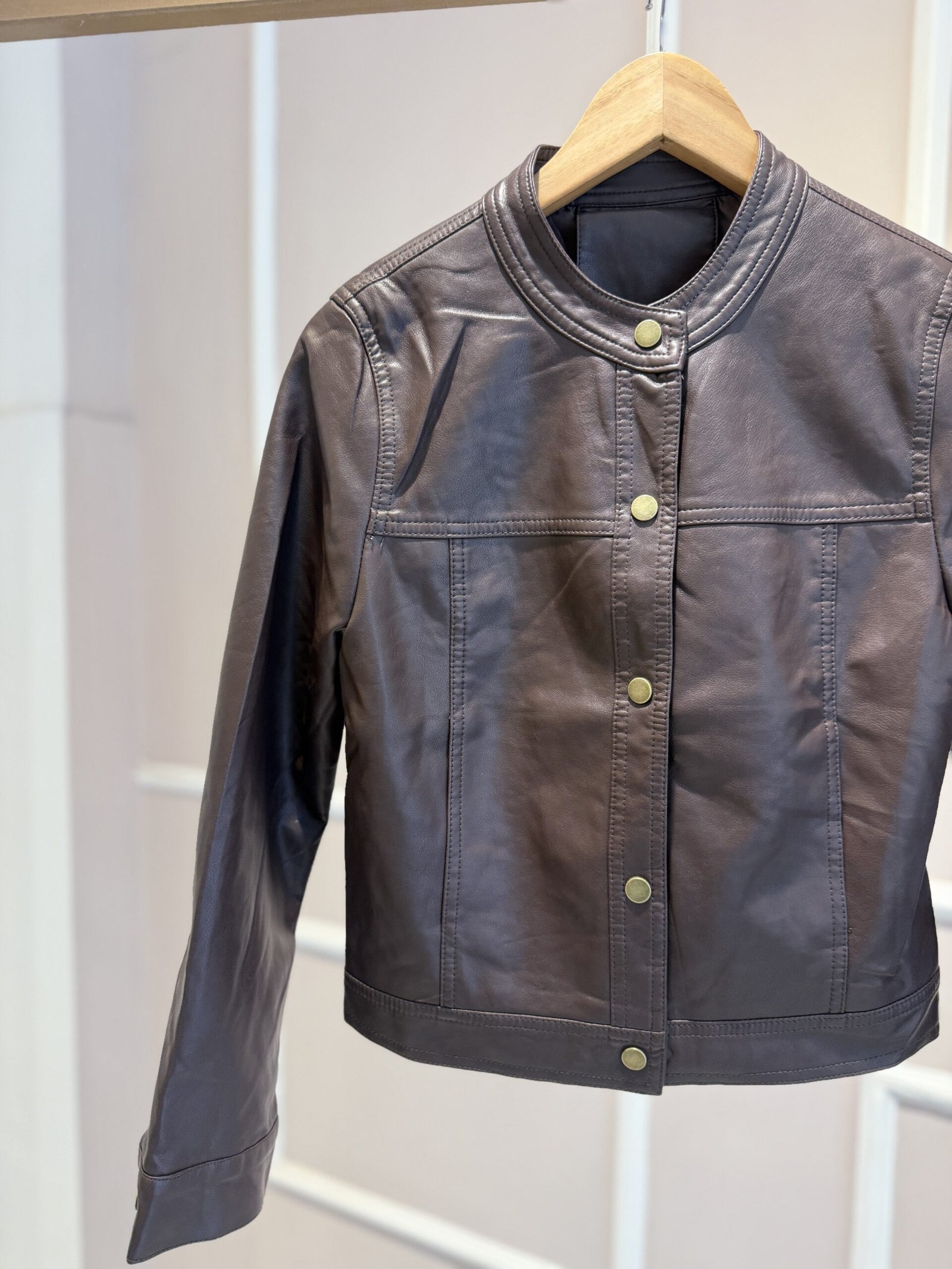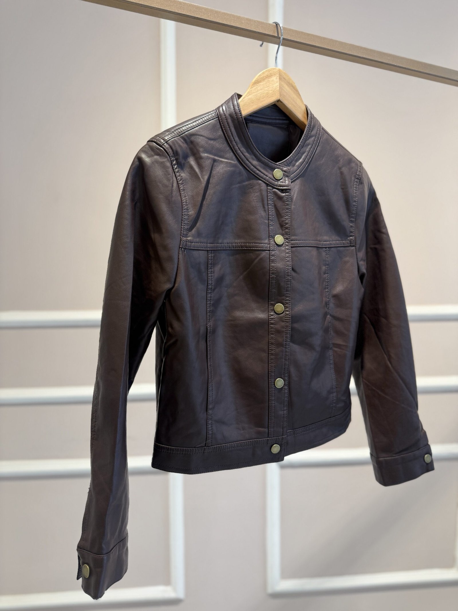 CHAQUETA ECO CUERO CHOCOLATE, TALLE M