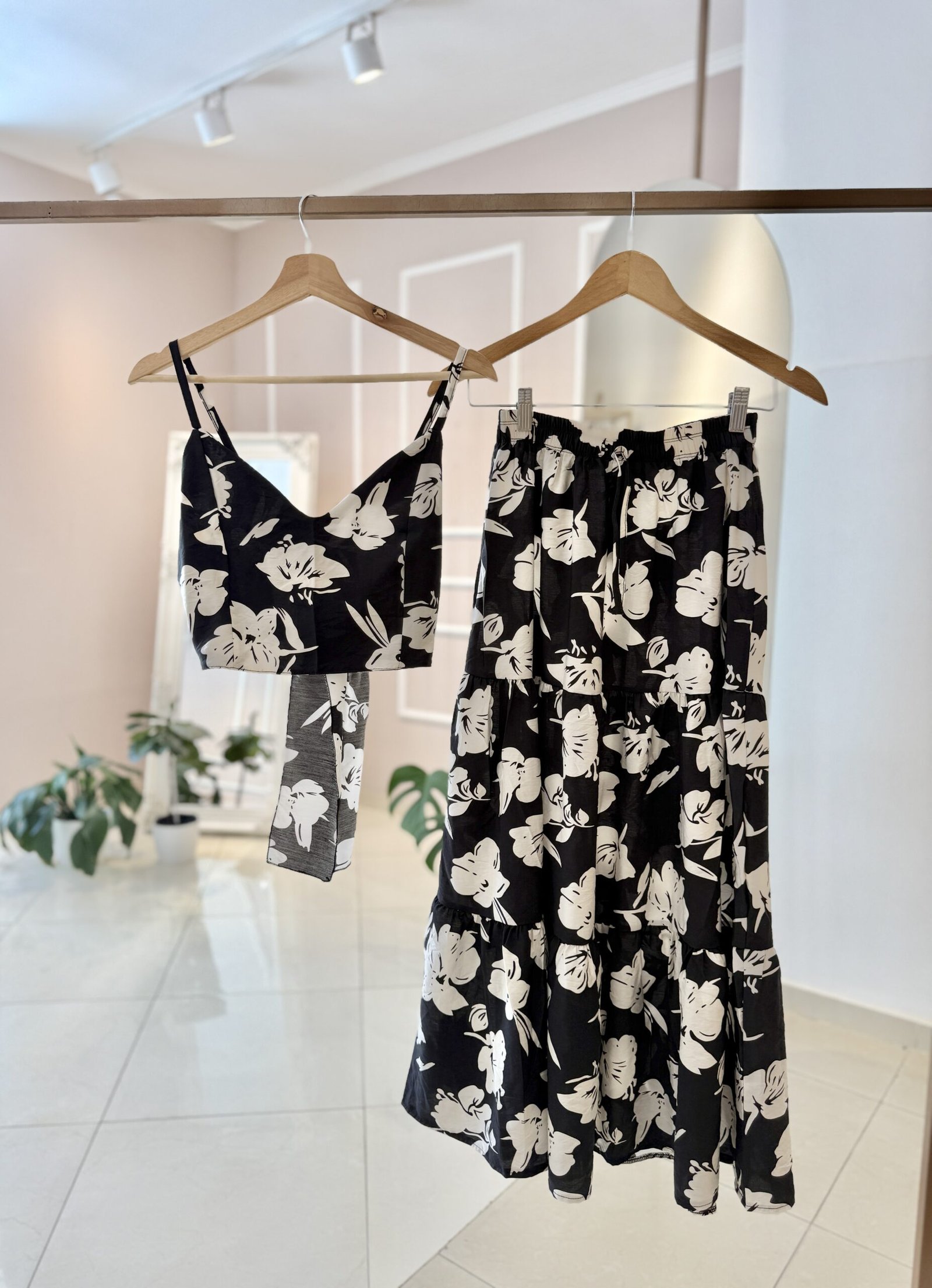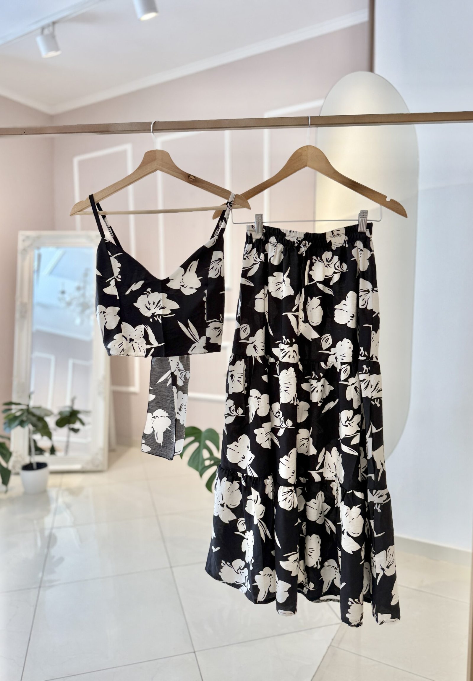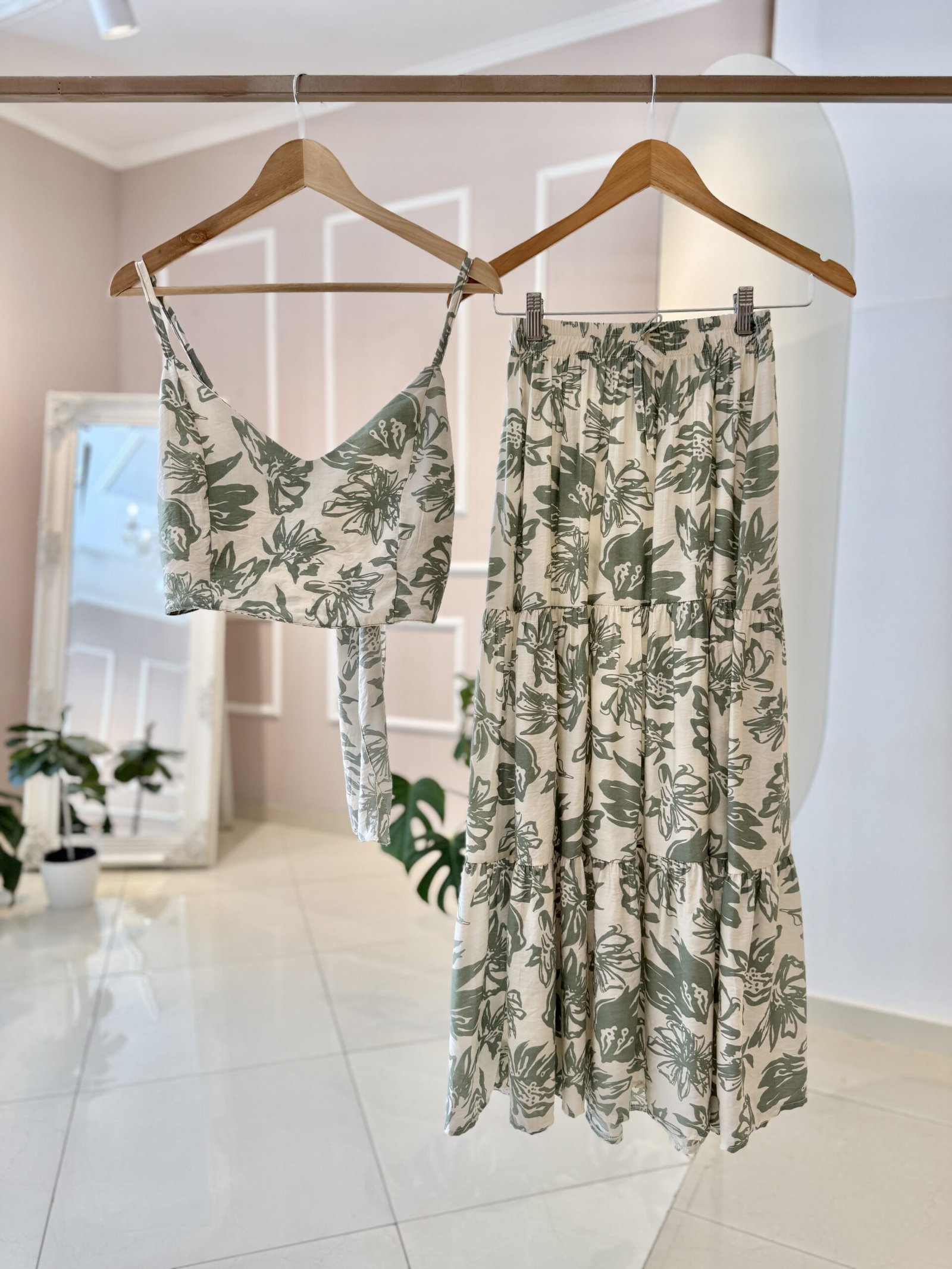 CONJUNTO TOP + POLLERA ESTAMPADA
