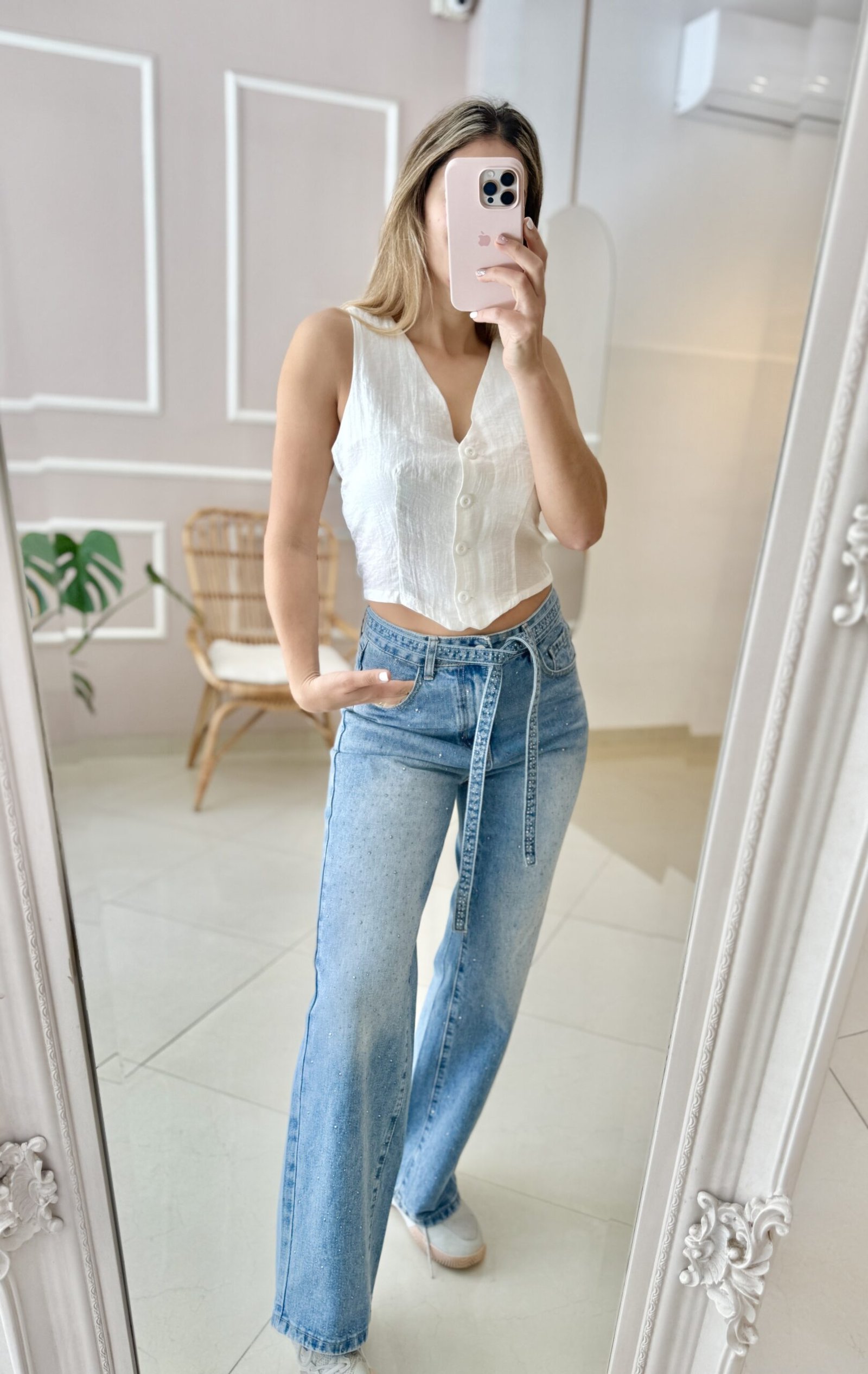 JEANS IMPORTADO CON STRAS, VIENE POR TALLE S=38 M=40