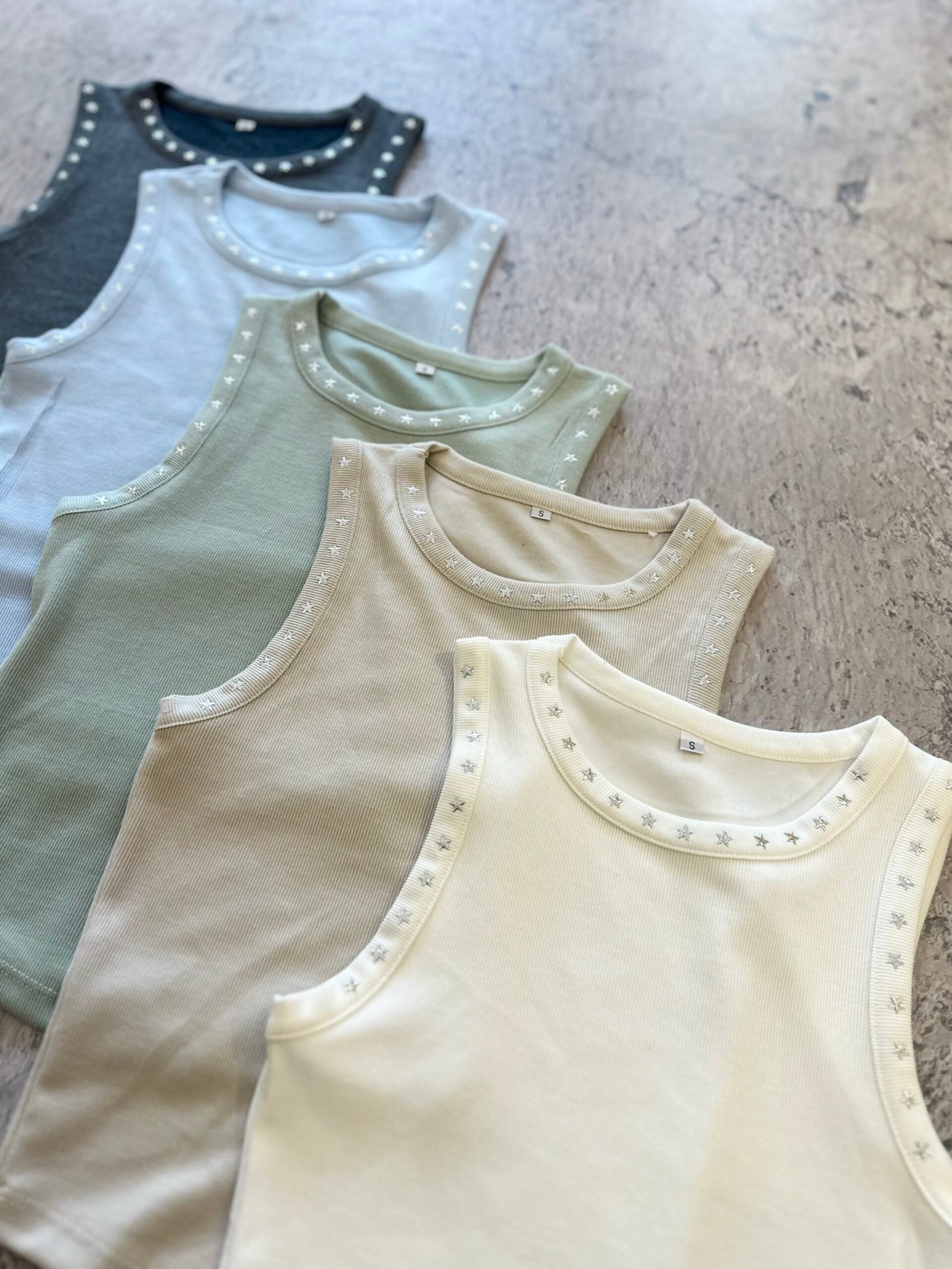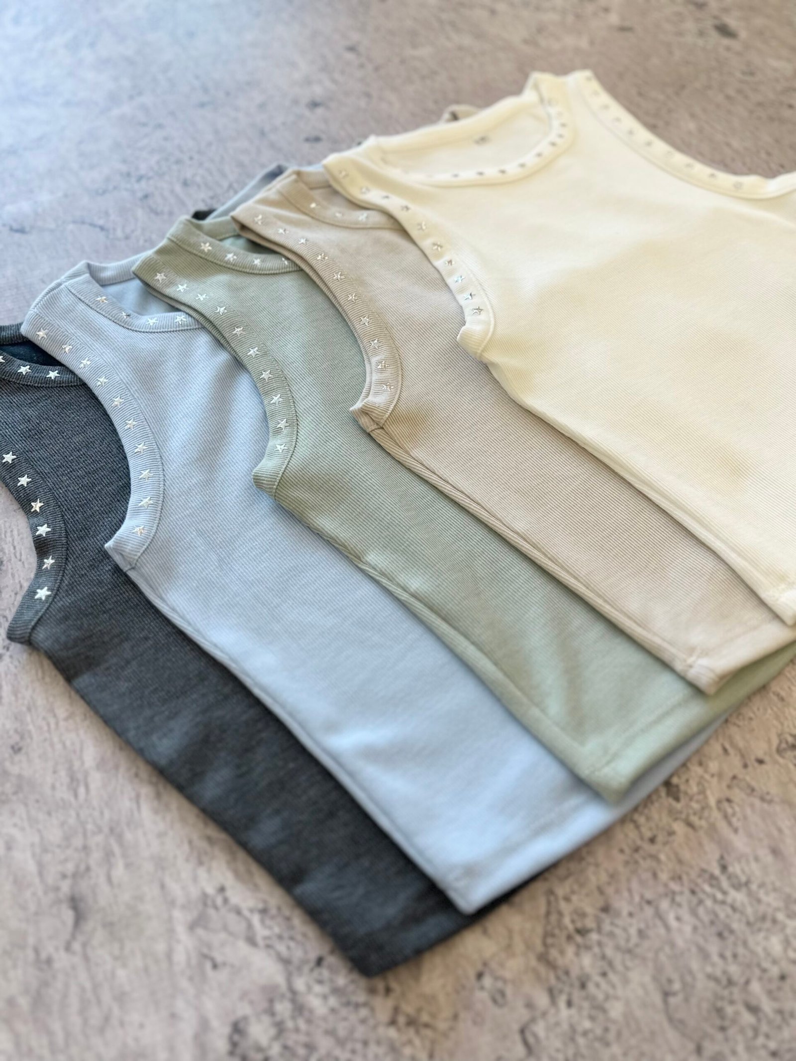 MUSCULOSA X TALLE DE MORLEY CON ESTRELLITAS DE APLIQUES