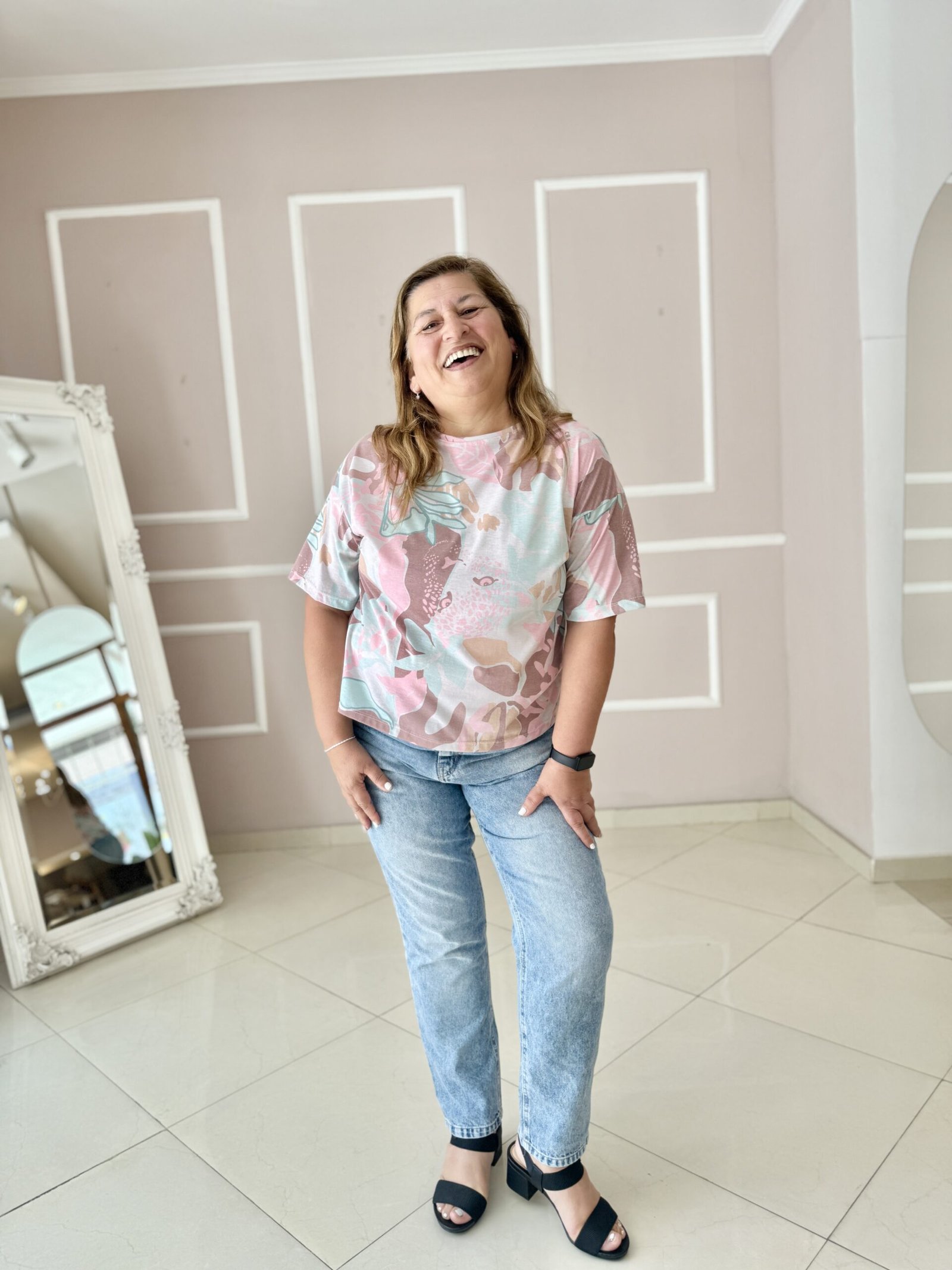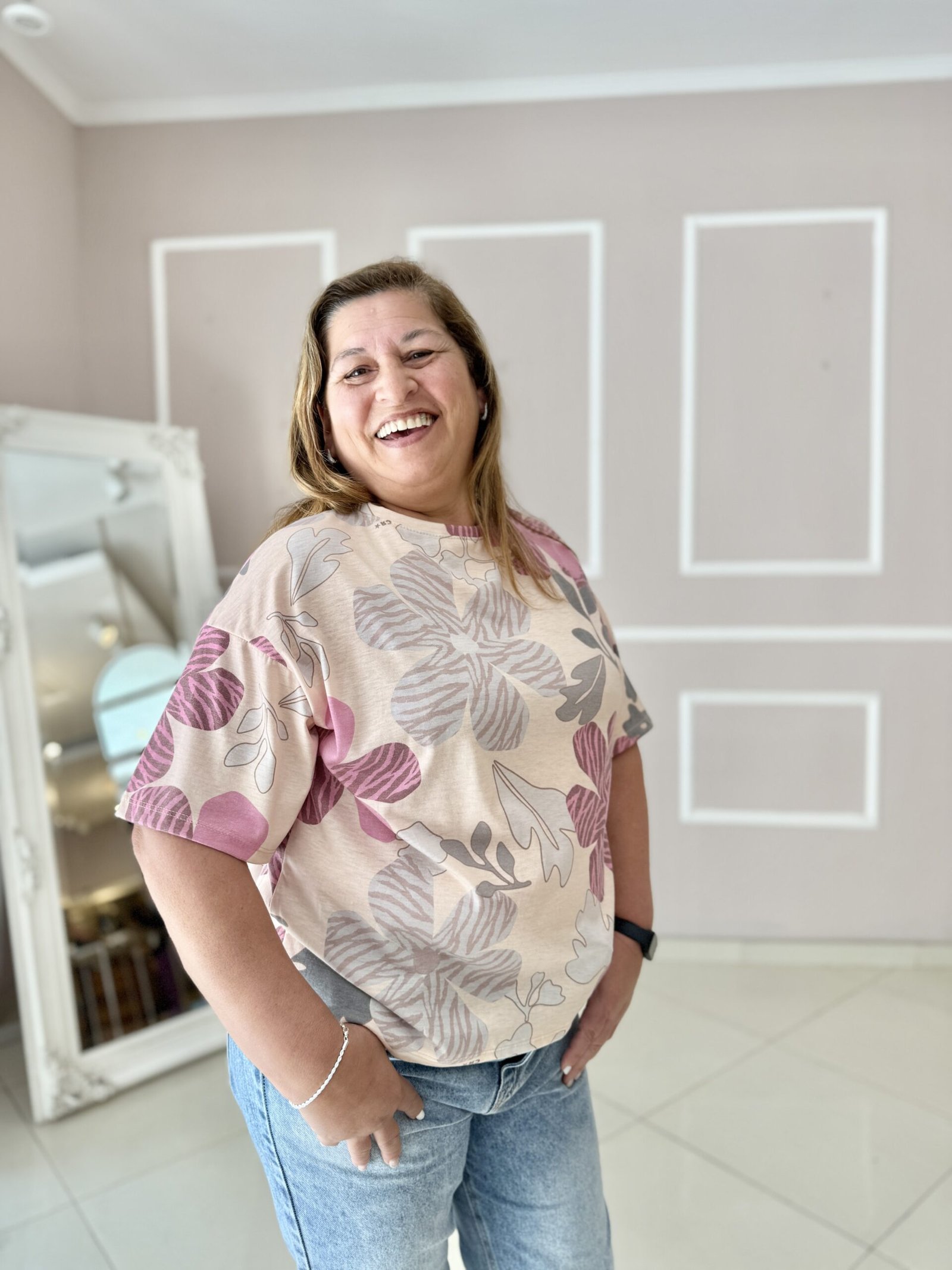 REMERA ESTAMPADA M/C, TALLE UNICO, SON COMO UN L/XL