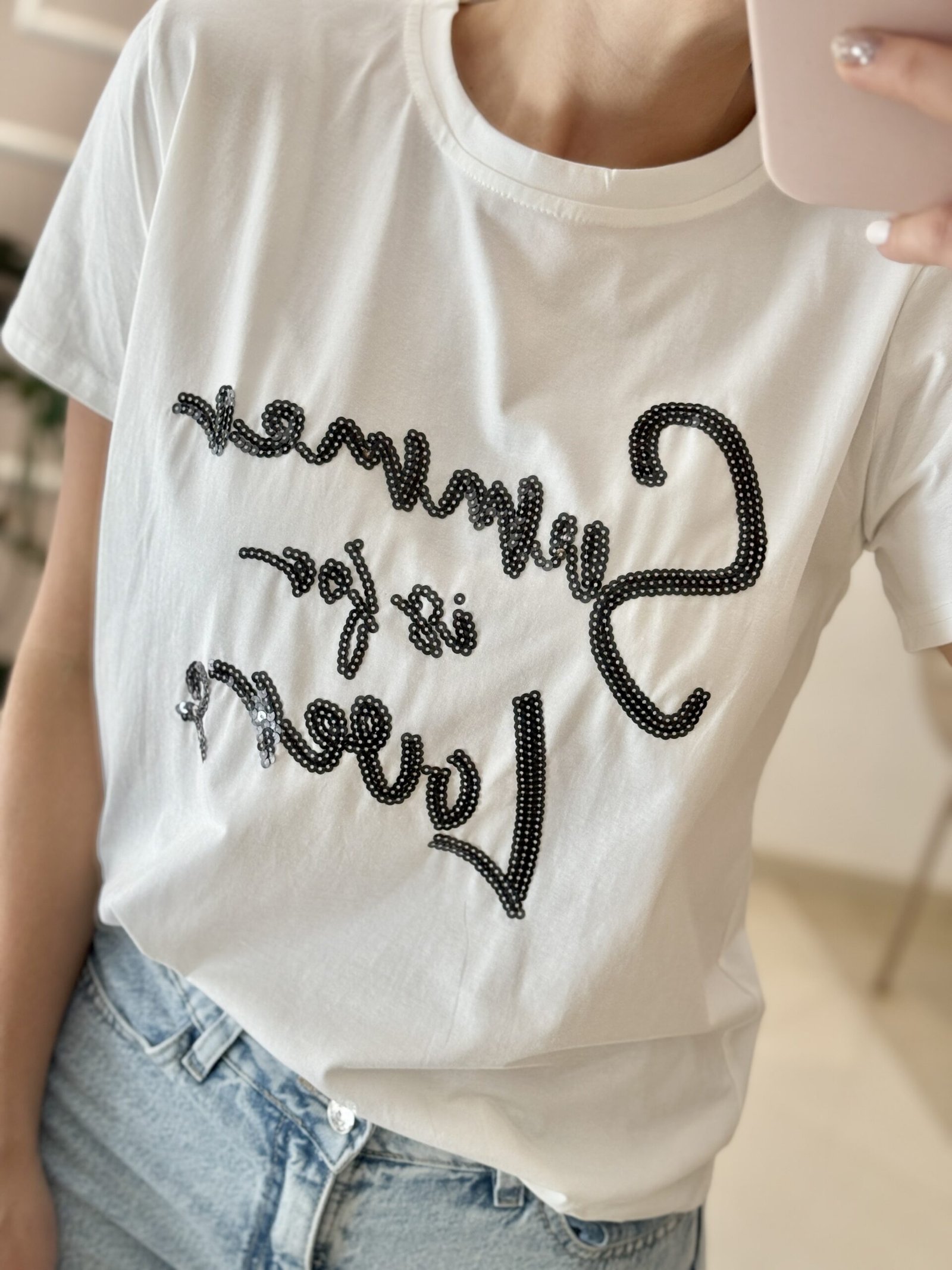 REMERA IMPORTADA, BORDADO LENTEJUELAS