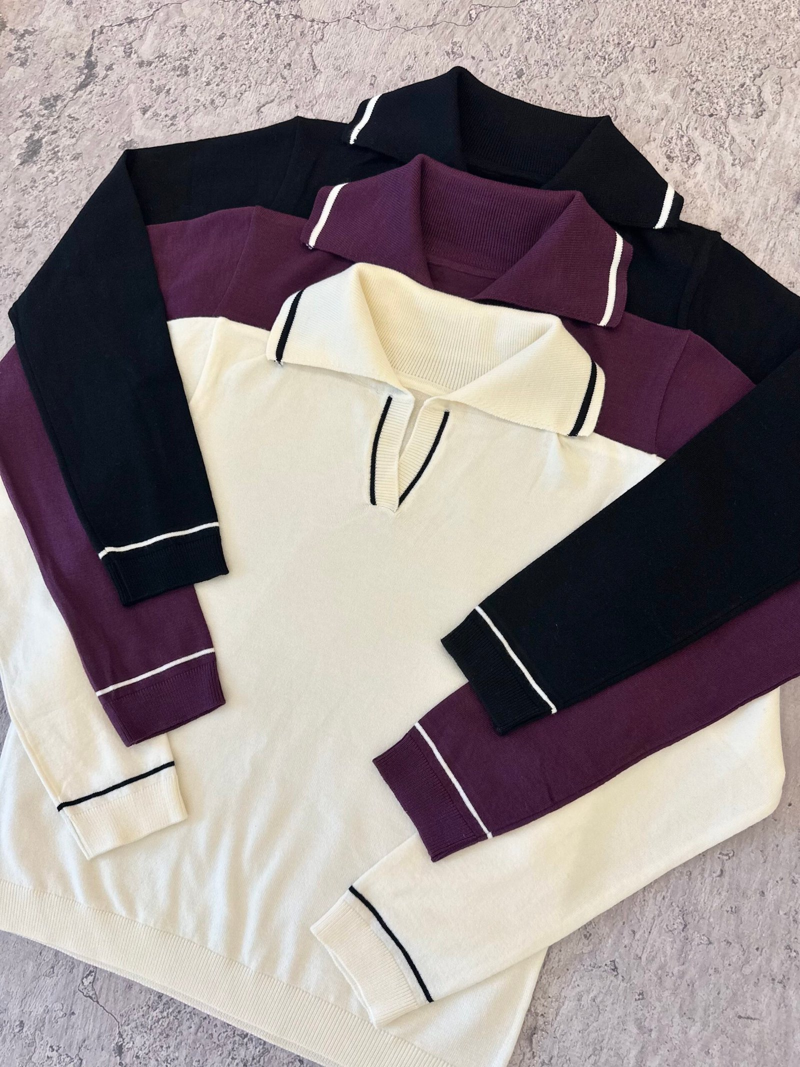 SWEATER HILO DE BREMER, CUELLO CHOMBA, TALLE UNICO S/M