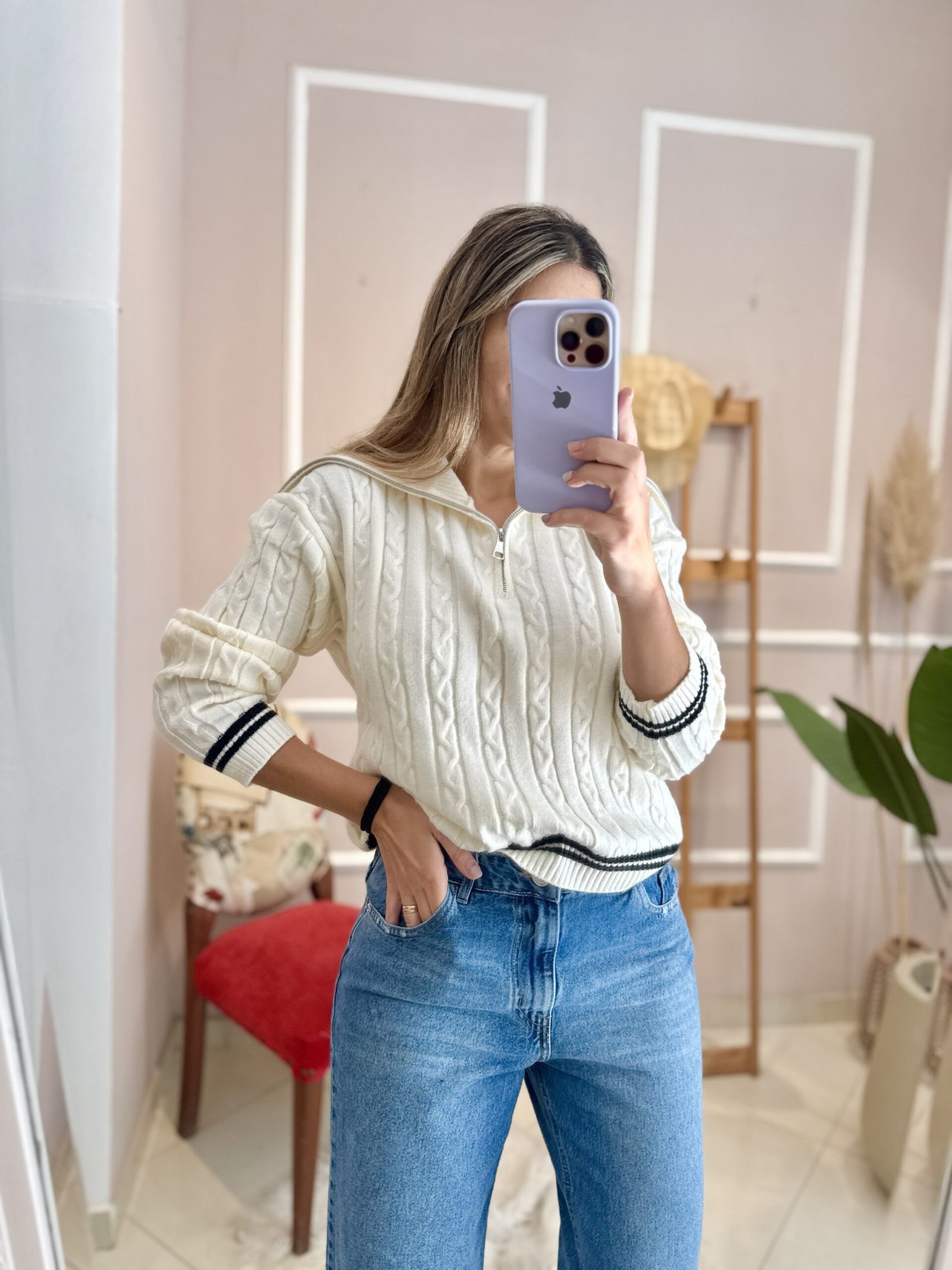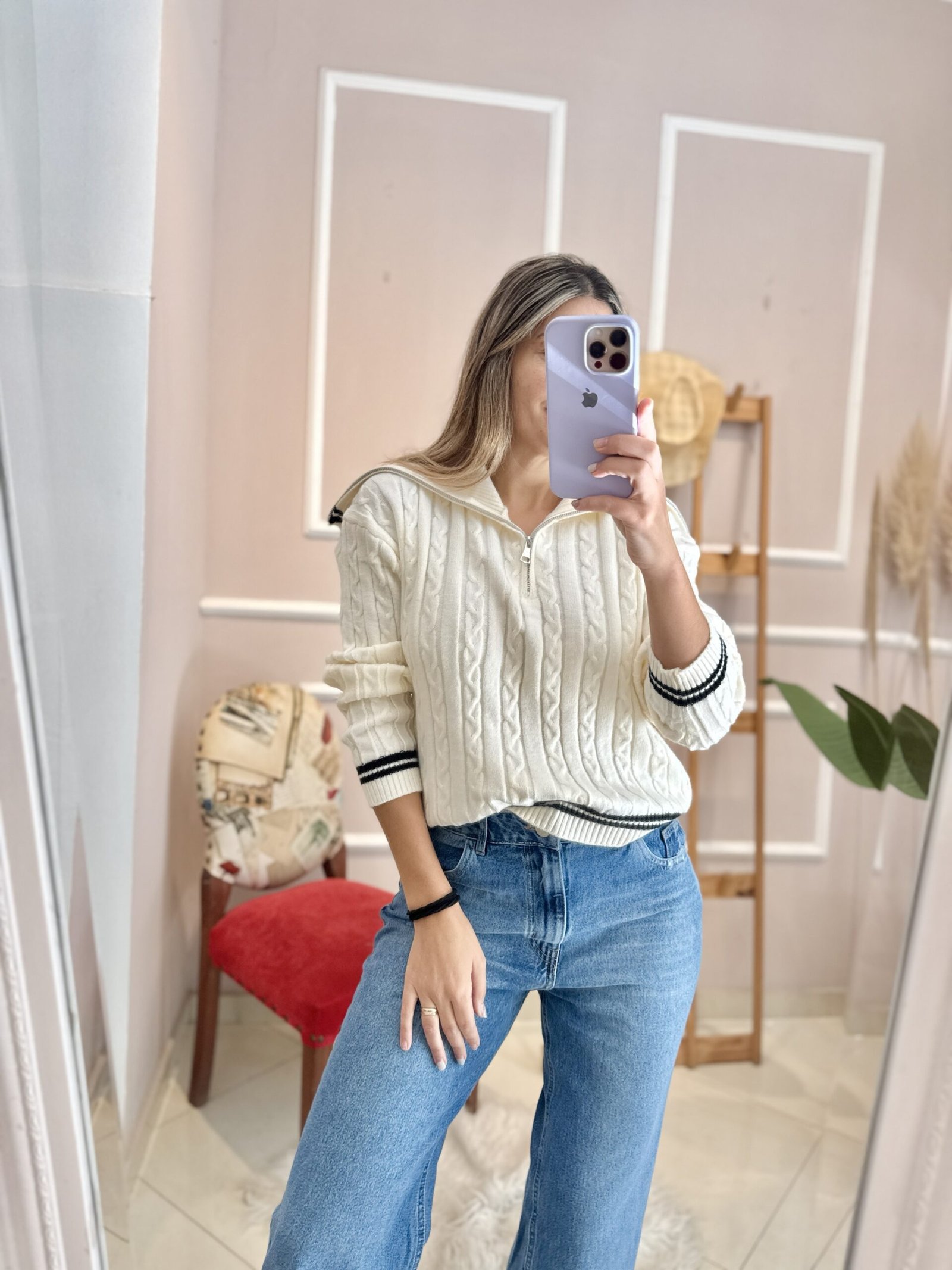 SWEATER IMPORTADO DE BREMER TRENZADO CON CIERRE, TALLE UNICO, ES COMO UN M/L