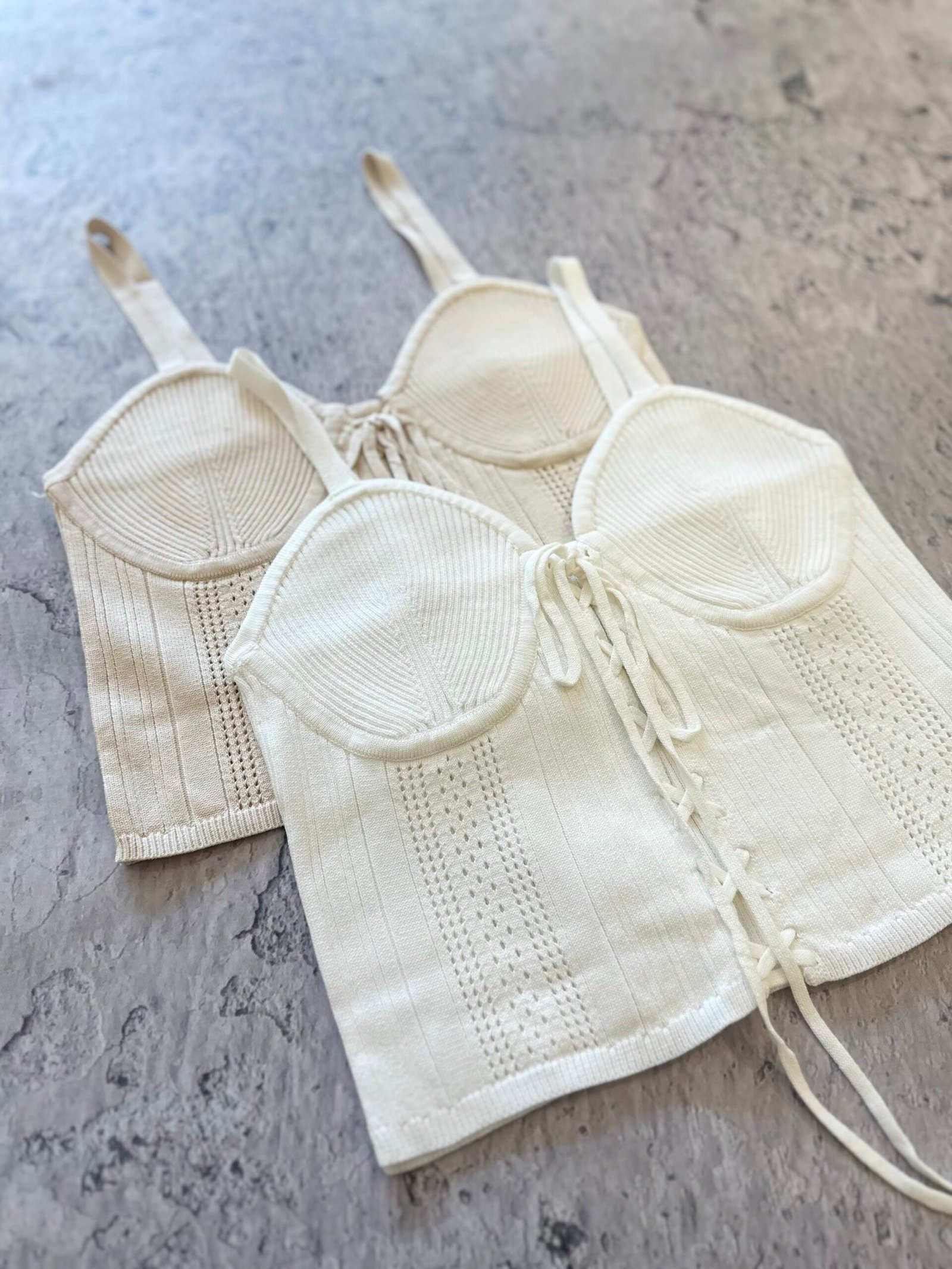 TOP DE HILO IMPRTADO, ESTILO CORSET, TALLE UNICO, SEDE